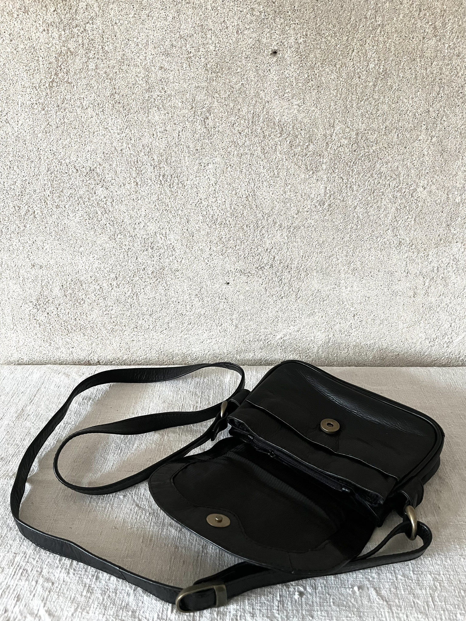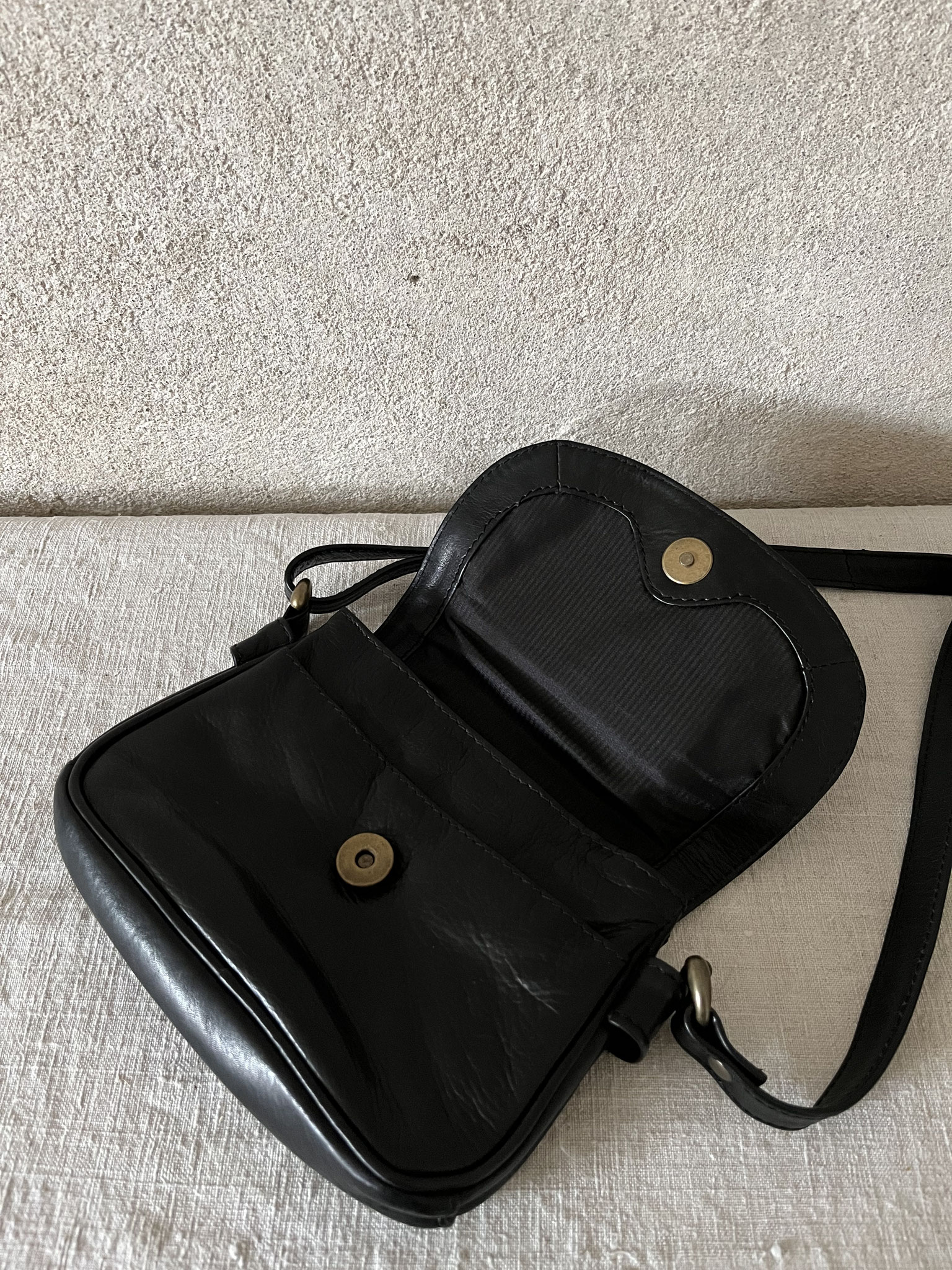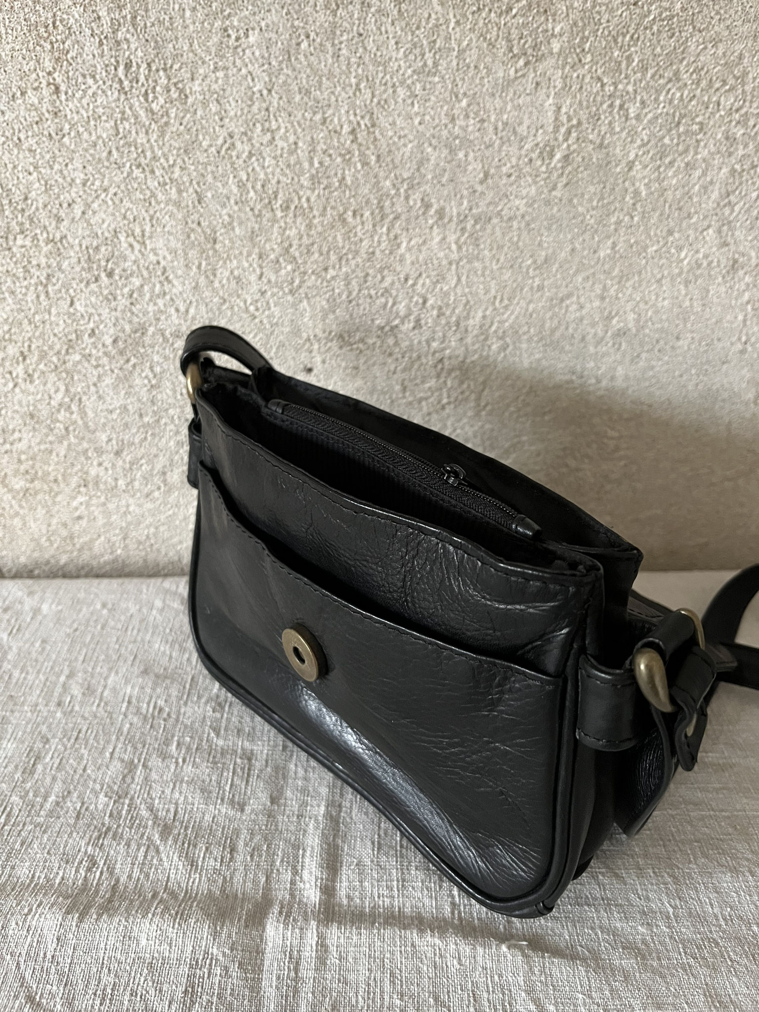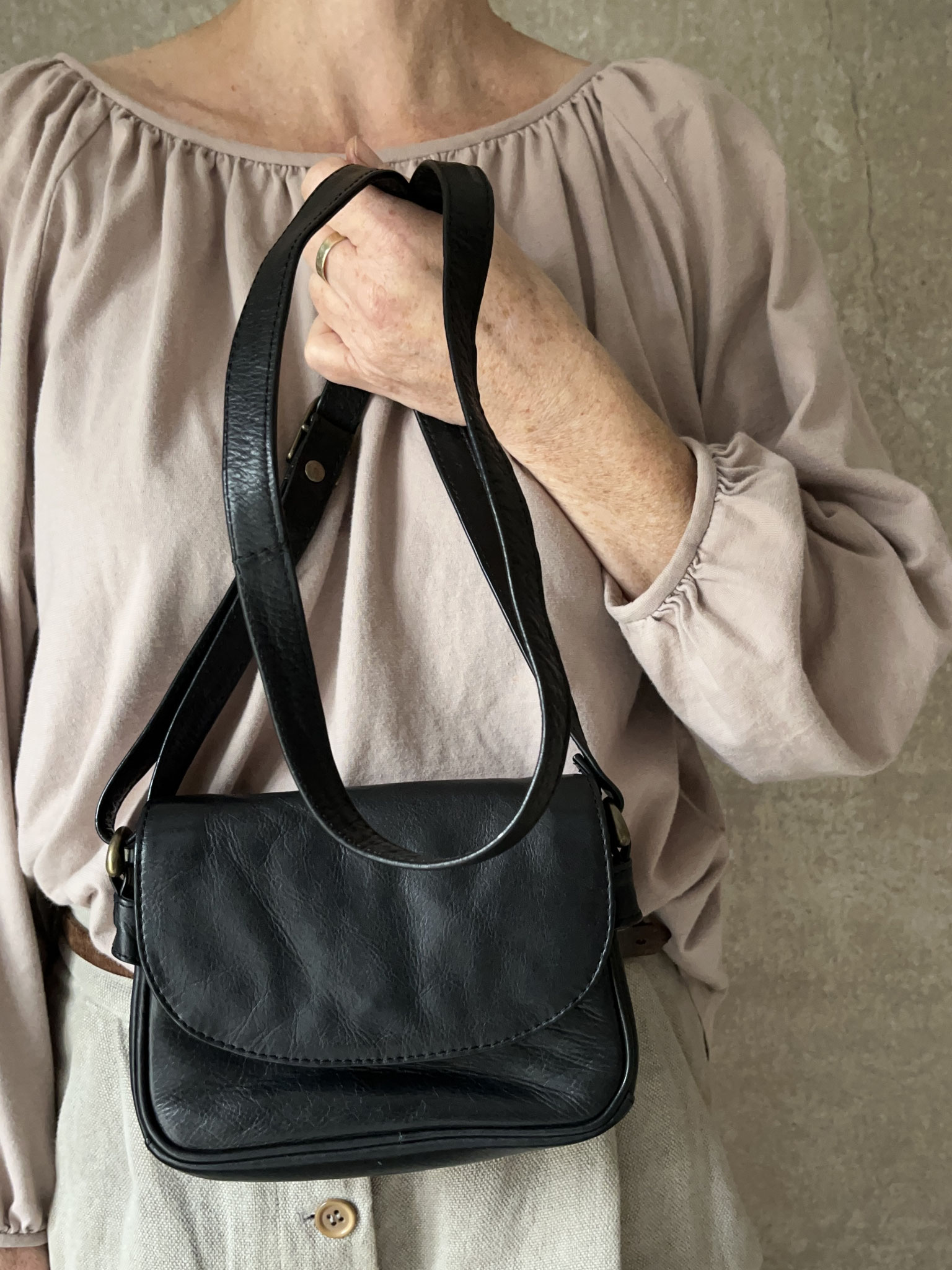 Kleine Lederhandtasche mit mehreren Innentaschen, Magnetverschluß und verstellbarem Riemen