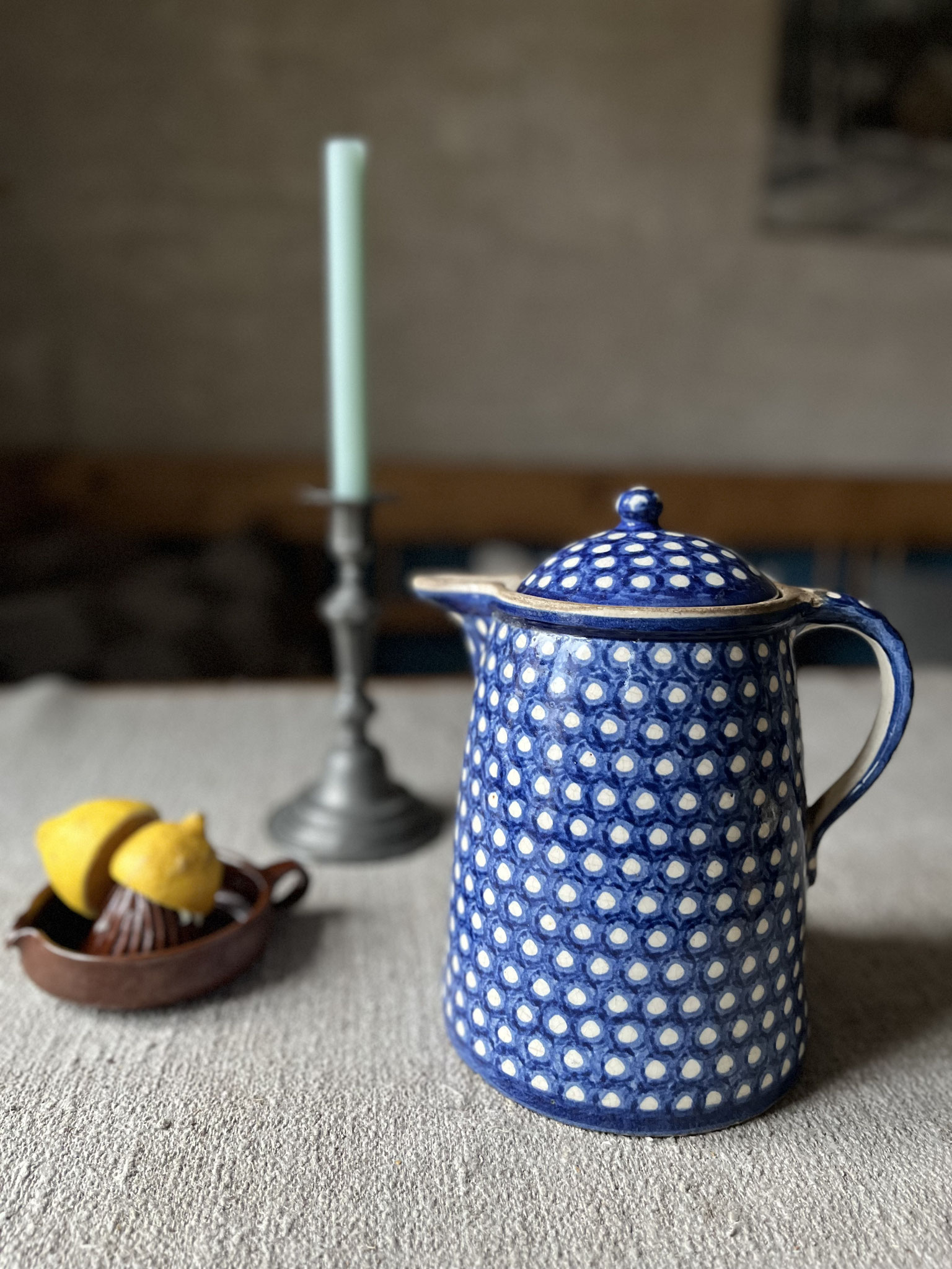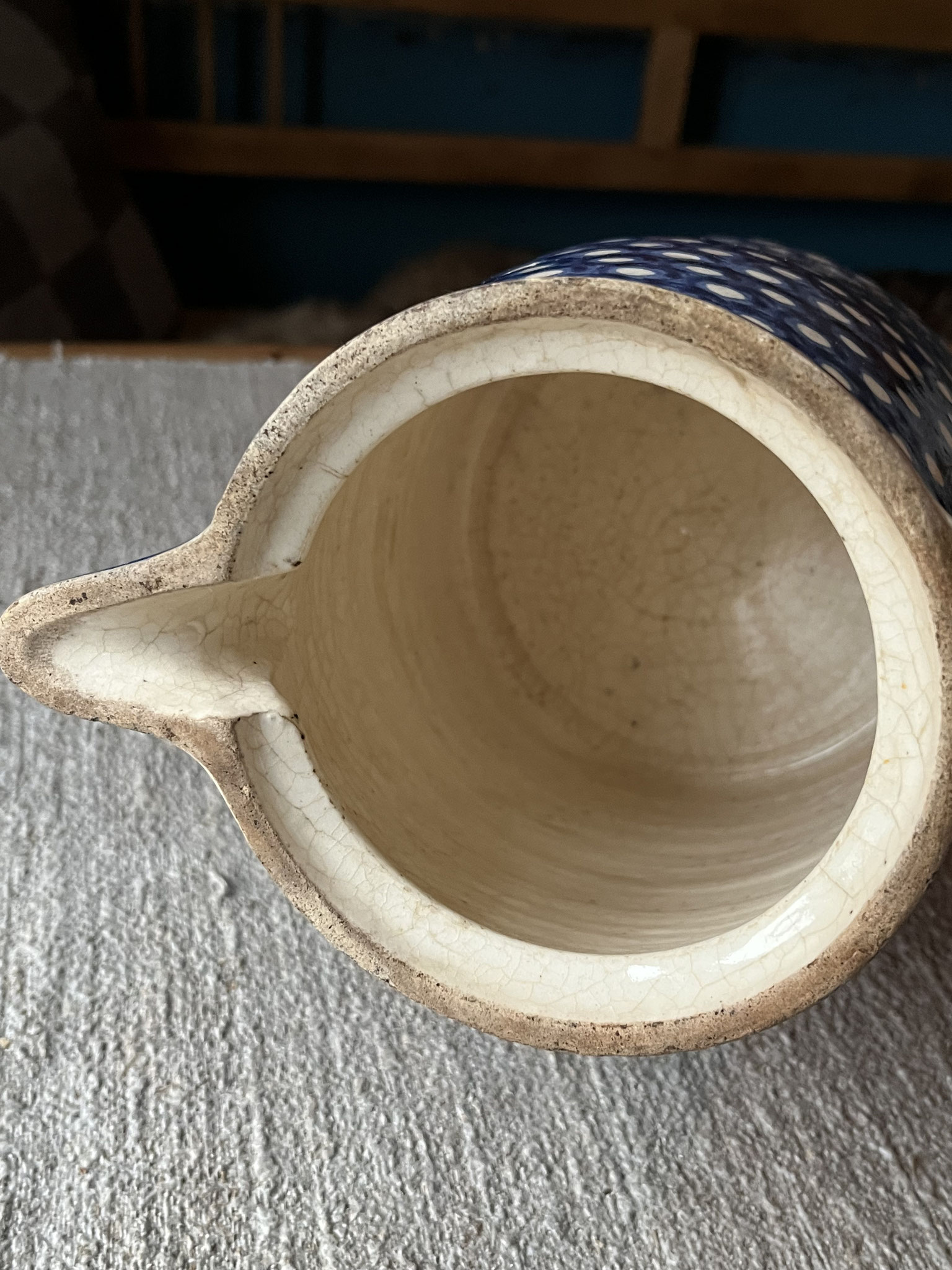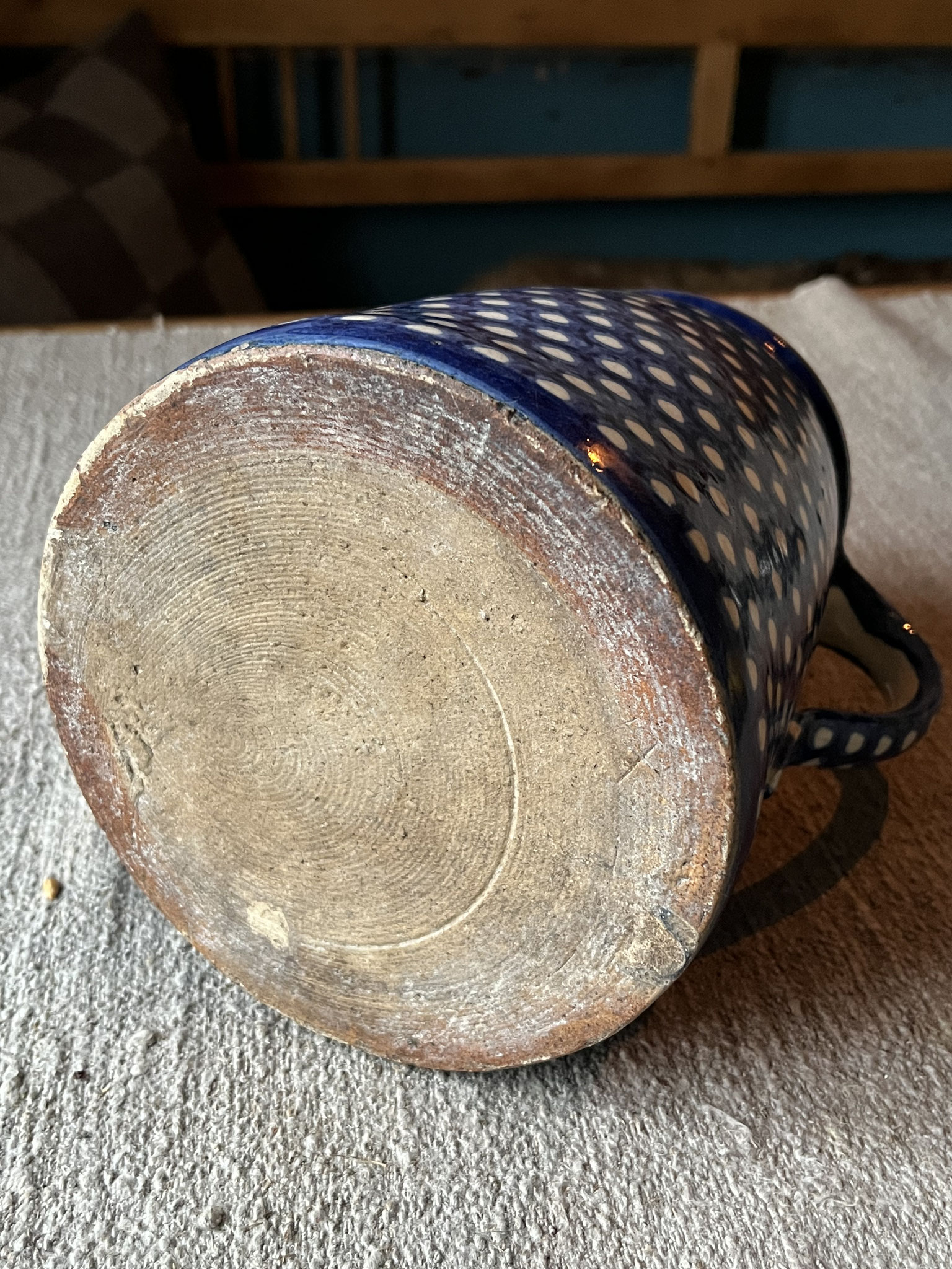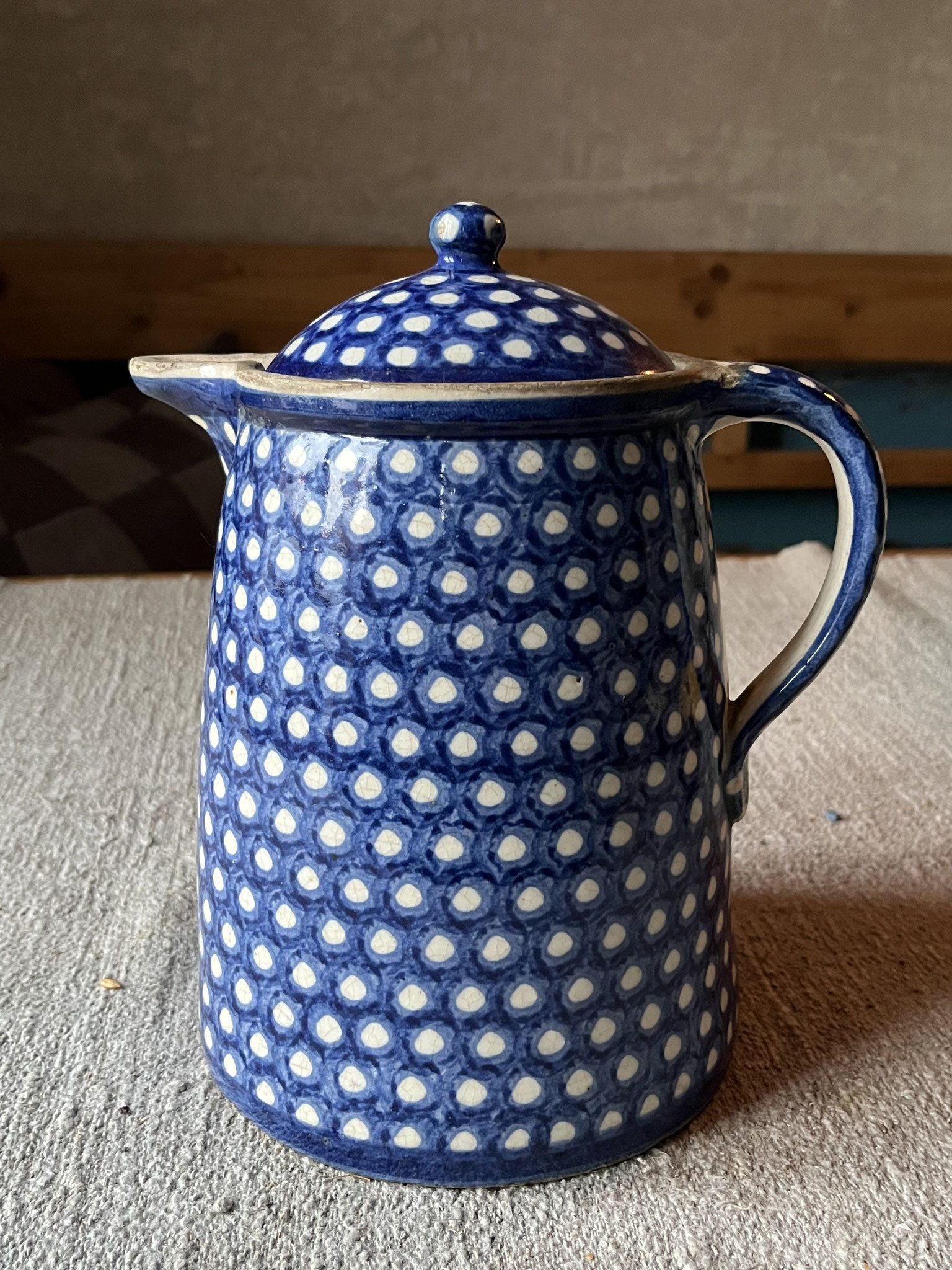 Sehr alter und großer Steingut-Krug mit Deckel / Bunzlauer Keramik