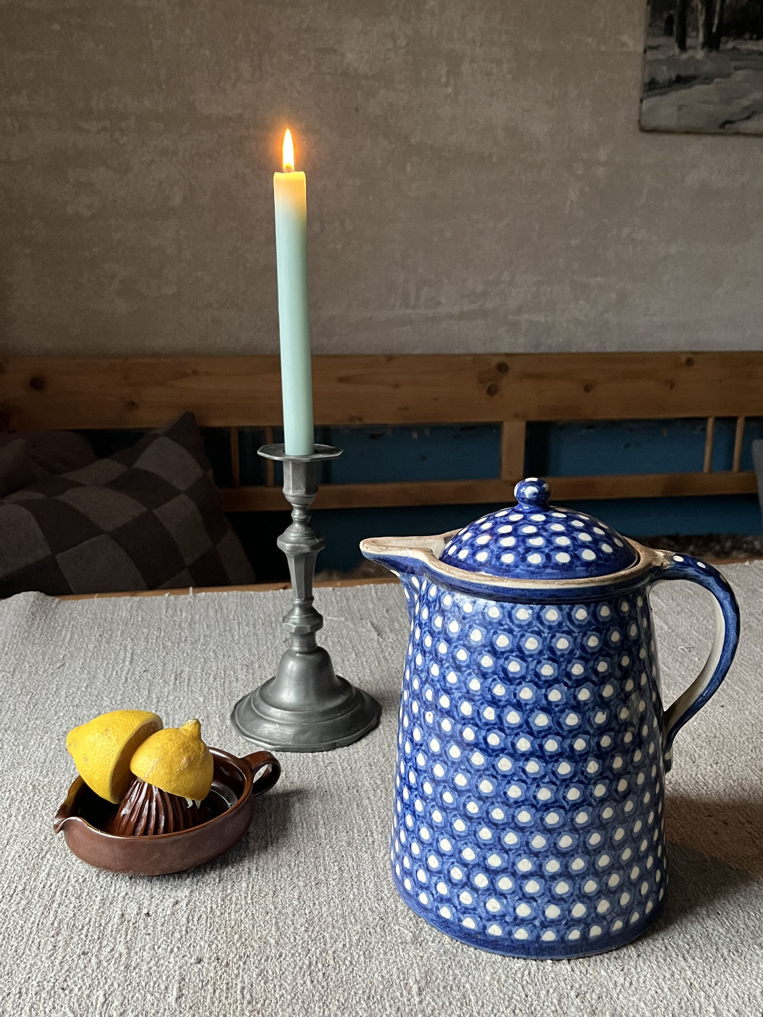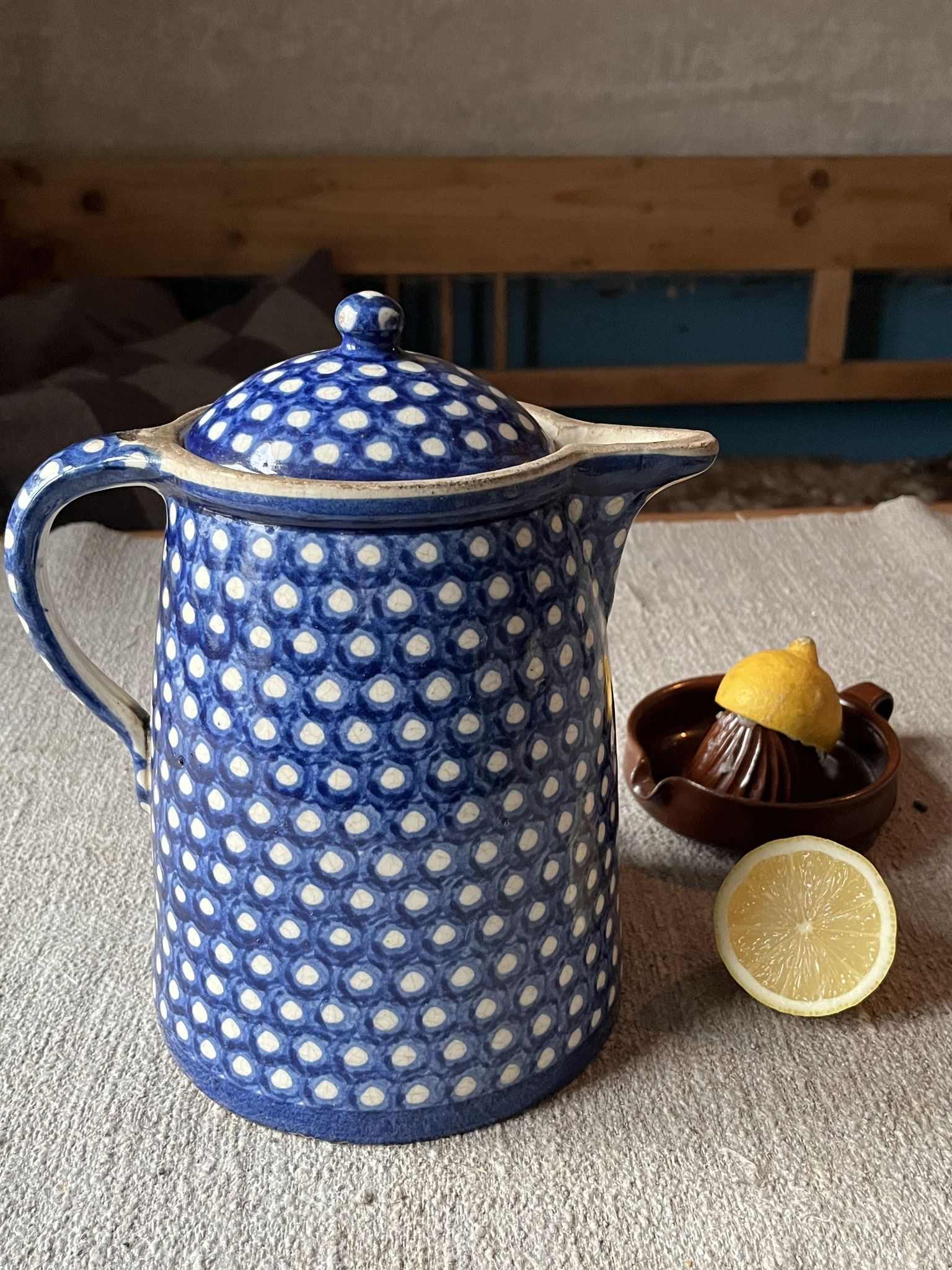Farbe: blau-weißes Punkt Decor